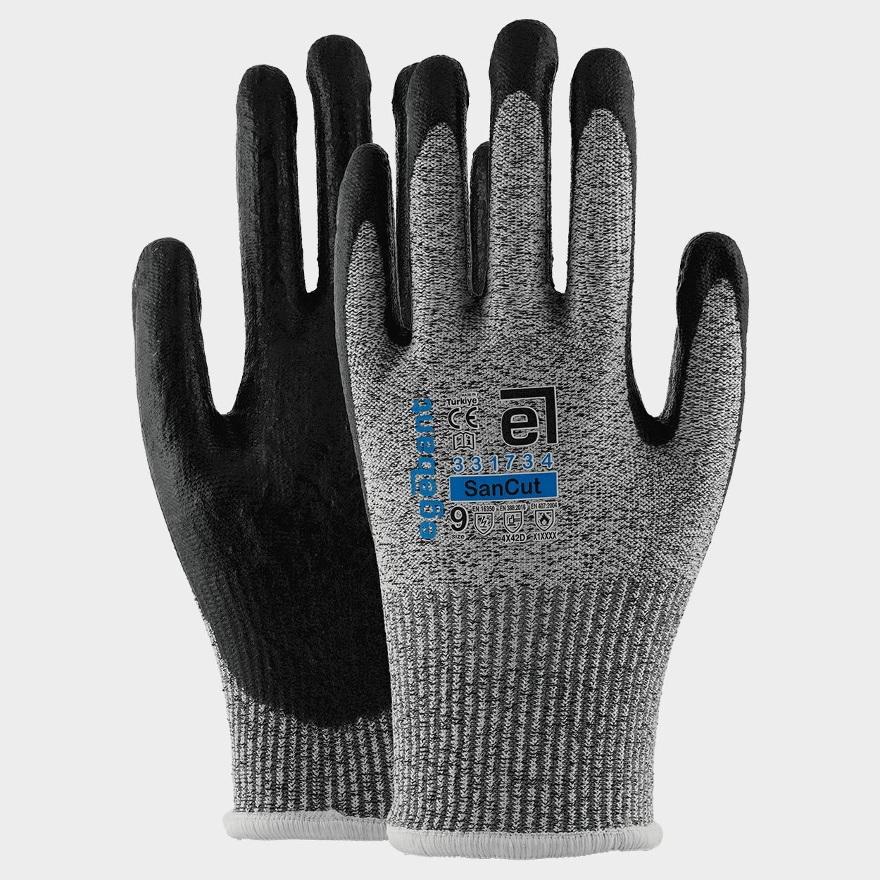 Γάντια κατά των κοψιμάτων (επίπεδο D) κατασκευασμένα από HPPE, ίνες χάλυβα και πολυεστέρα, συντηγμένα σε αφρό νιτριλίου για βέλτιστη προστασία και άνεση κατά την εργασία.