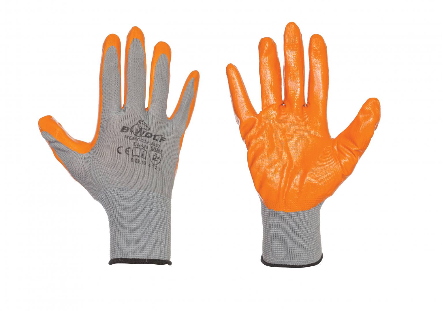 Πλεκτά γάντια πολυεστέρα, βουτηγμένα σε νιτρίλιο εσωτερικά, ελαστικά.