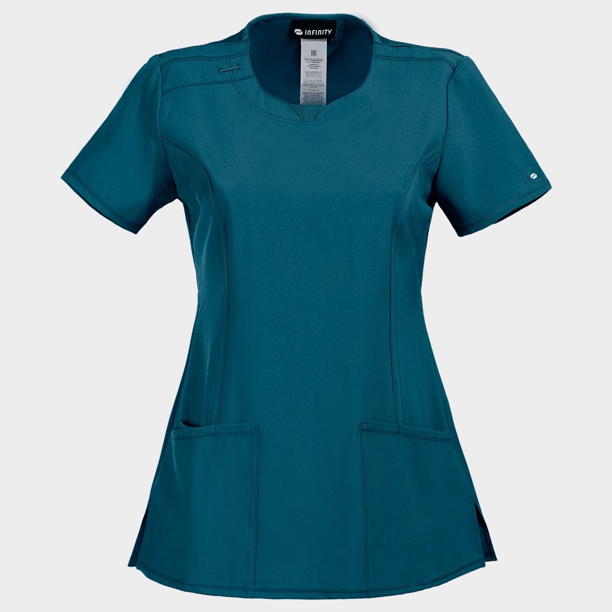 Γυναικεία ιατρική μπλούζα με στρογγυλή λαιμόκοψη και αντιμικροβιακή επεξεργασία, που παρέχει πρόσθετη προστασία και φρεσκάδα όλη την ημέρα. Μέρος της συλλογής Cherokee Infinity, που συνδυάζει μοντέρνο σχεδιασμό και πρακτικότητα.