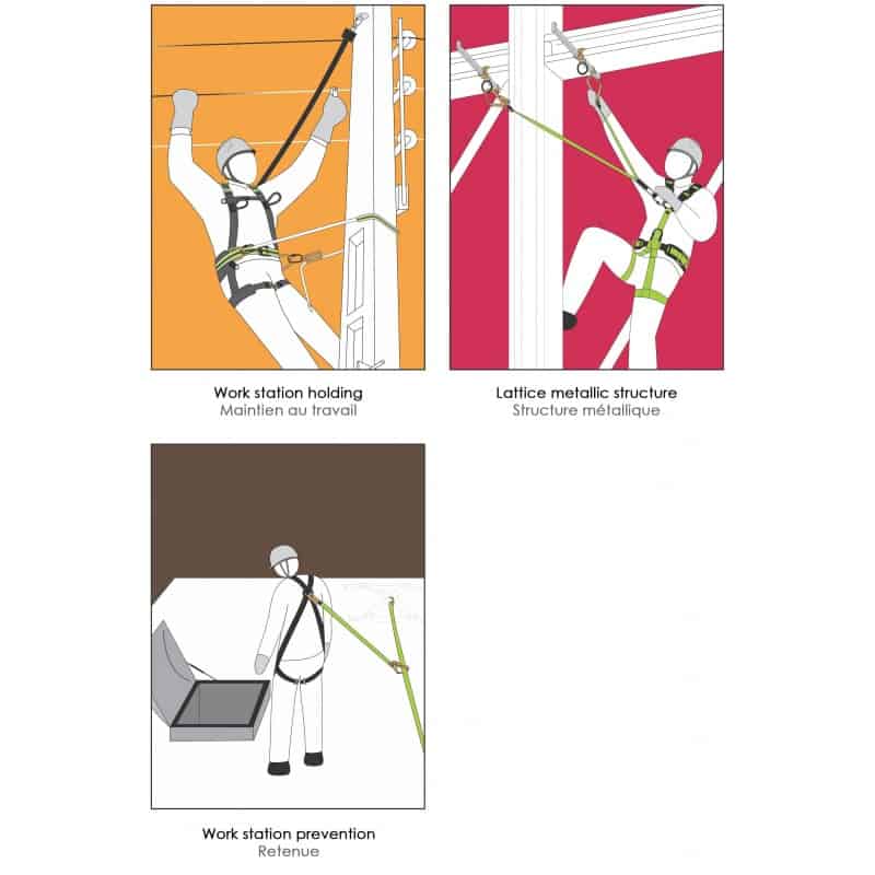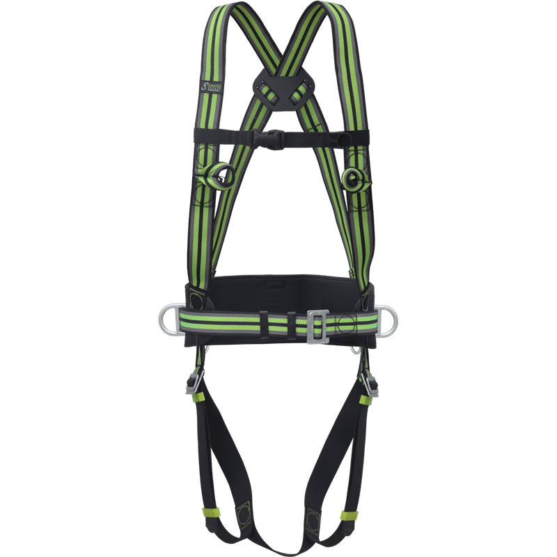 Χαρακτηριστικά – 1 ραχιαίος δακτύλιος D, 2 υφασμάτινα σημεία στερέωσης για συστήματα ανακοπής πτώσης και 2 πλευρικά σημεία σύνδεσης (δακτύλιοι D) στο ύψος του ισχίου για τοποθέτηση εργασίας