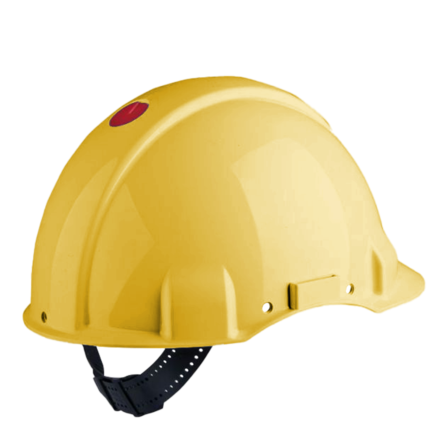 Κράνος 3M™ Hard Hat Series G3000 χωρίς αερισμό για προστασία κεφαλιού σχεδιασμένο για χρήση σε δύσκολες συνθήκες. Στρογγυλεμένη σχεδίαση που παρέχει καλό οπτικό πεδίο και βοηθά στην αποφυγή παγίδευσης εξαρτημάτων σε καλώδια ή κλαδιά.