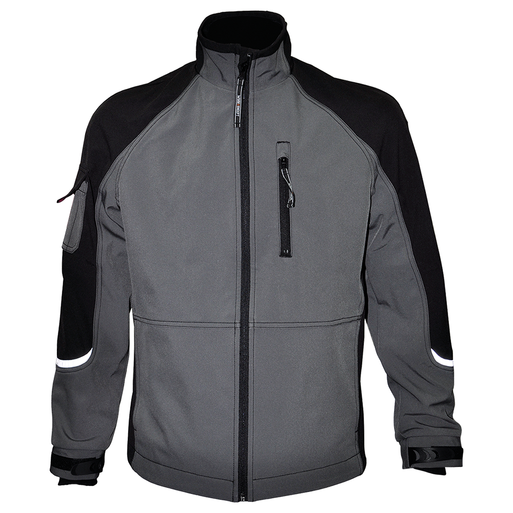 Αδιάβροχο σακάκι softshell, κατάλληλο για εξωτερική εργασία και πεζοπορία, με αντανακλαστικές σωληνώσεις και ελαστικές μανσέτες. ΥΛΙΚΟ: 96% πολυεστέρας, 4% Spandex®, 290 g/m², μεμβράνη TPU, στήλη νερού 5000 mm.