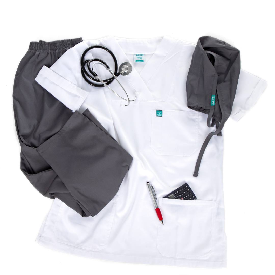 Σετ Ιατρικό Παντελόνι και Μπλούζα ALEZI Unisex ΛΕΥΚΟ/ΓΚΡΙ – White / Grey