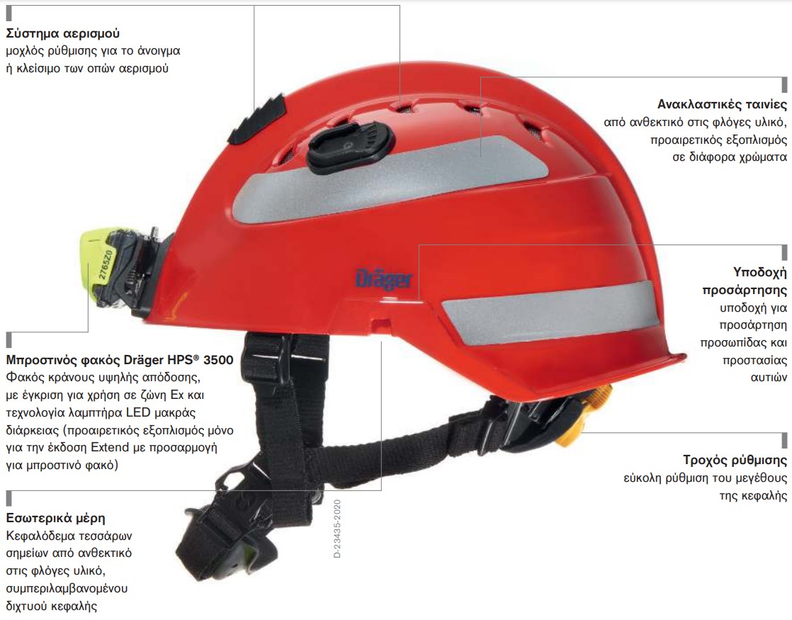 Το Dräger HPS 3500 διαθέτει σύστημα αερισμού, που διασφαλίζει βέλτιστο κλίμα στο εσωτερικό του κράνους.
