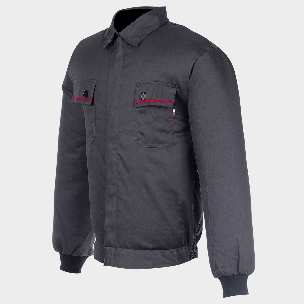 Μπουφάν εργασίας με κλείσιμο με φερμουάρ μπροστά και ελαστικές μανσέτες με δύο τσέπες.