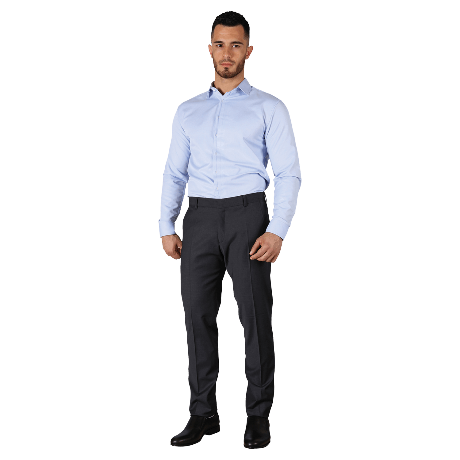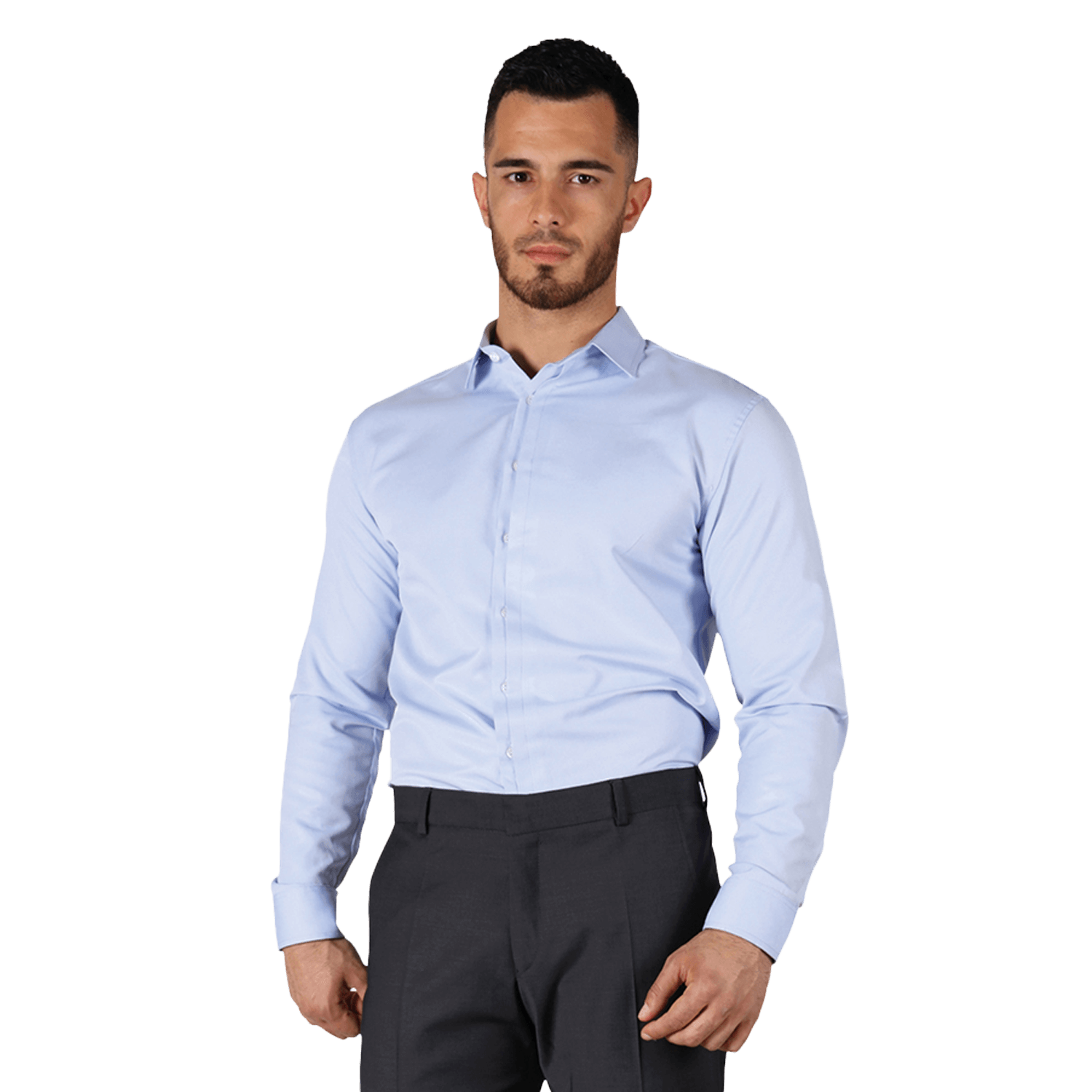 Ανδρικό εφαρμοστό πουκάμισο με μακριά μανίκια και μικρό γιακά σε ιταλικό στυλ.